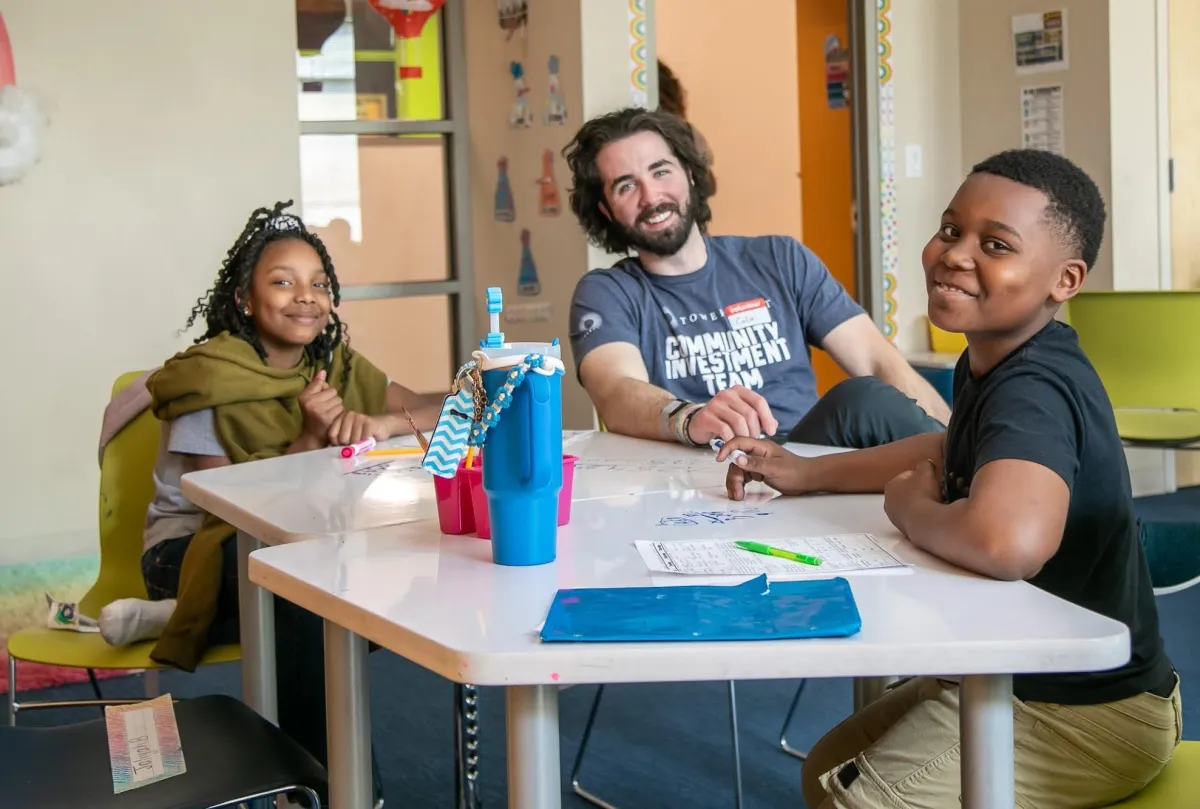 Volunteer mentors build long-term relationships while guiding homework, STEM projects, and literacy skills.